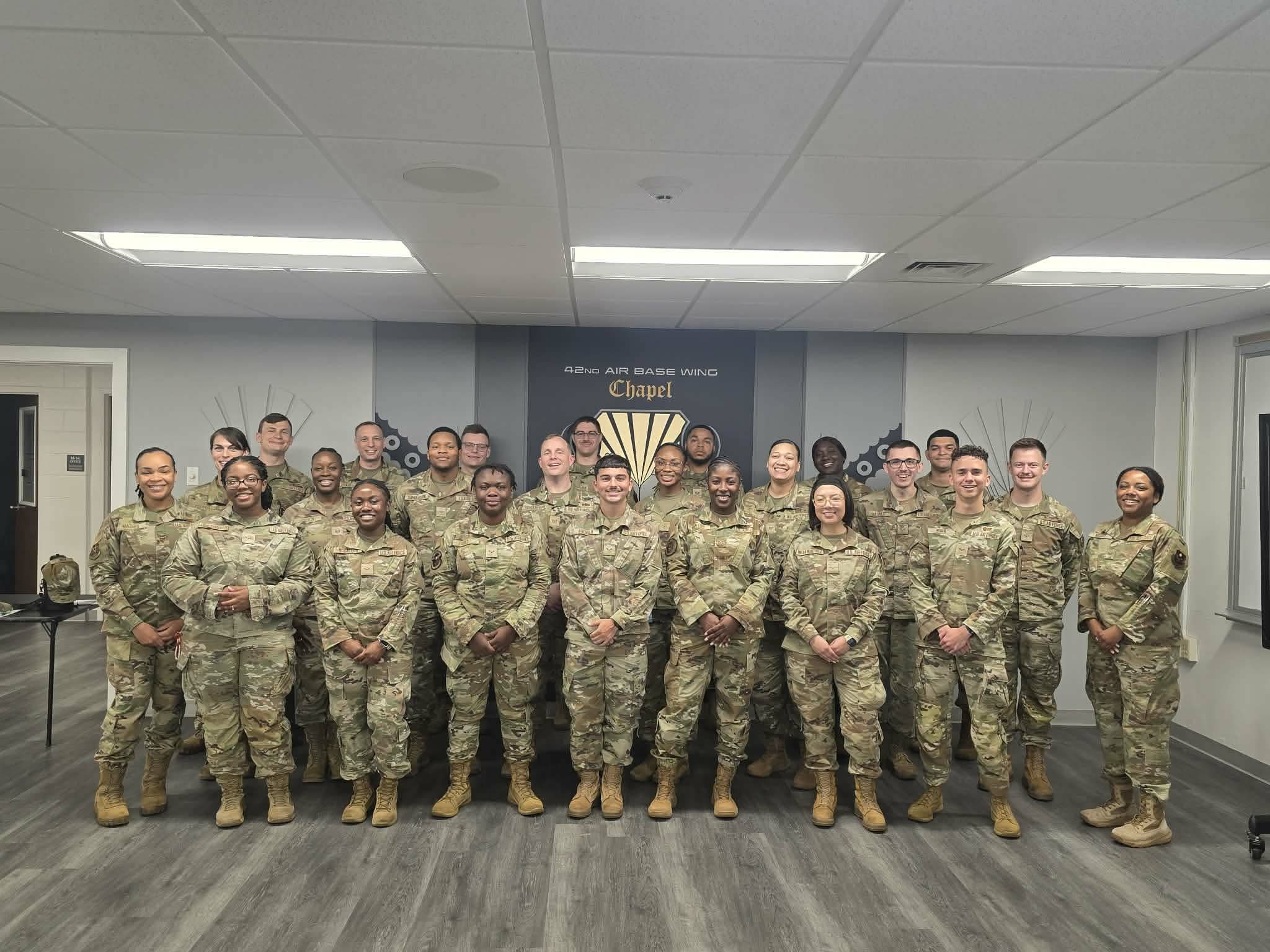 Gen. Ken Wilsbach, Air Force Chief of Staff, center, and Chief Master Sgt. of the Air Force David R. Wolfe, right, are greeted by Lt. Gen. Daniel Tulley, commander and president of Air University, upon arrival at Air University headquarters at Maxwell Air Force Base, Alabama, April 9, 2026. The senior leaders visited Air University to participate in the International Honor Roll ceremony and engage with Airmen and families during Pre-Command Team Training. (U.S. Air Force phot by Billy Blankenship)